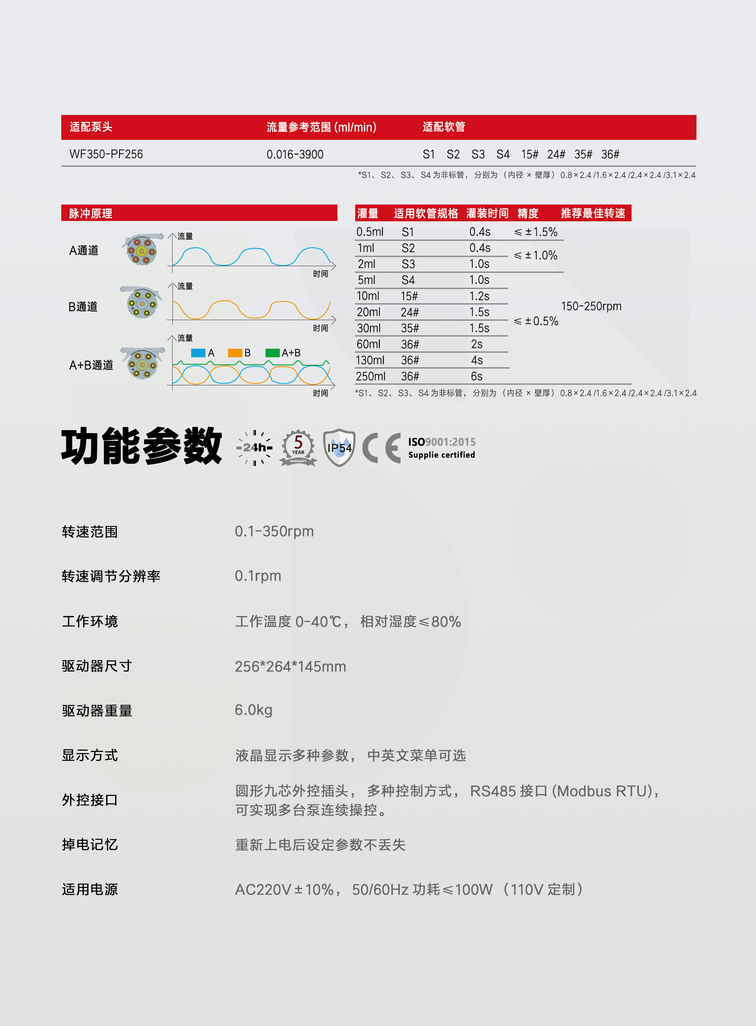 流量范围| 0.016~3900ml/min;推荐分类| 0.5ml、1ml、2ml、5ml、10ml、20ml、30ml、60ml、130ml、250ml、500ml、1000ml;描述| 高精度液体分装,≤±0.5%误差,有多种固化分配模式可选;| 免维护直流无刷驱动,闭环控制,静音运行;| 不锈钢机身外壳,便于清洁防腐,符合GMP要求。